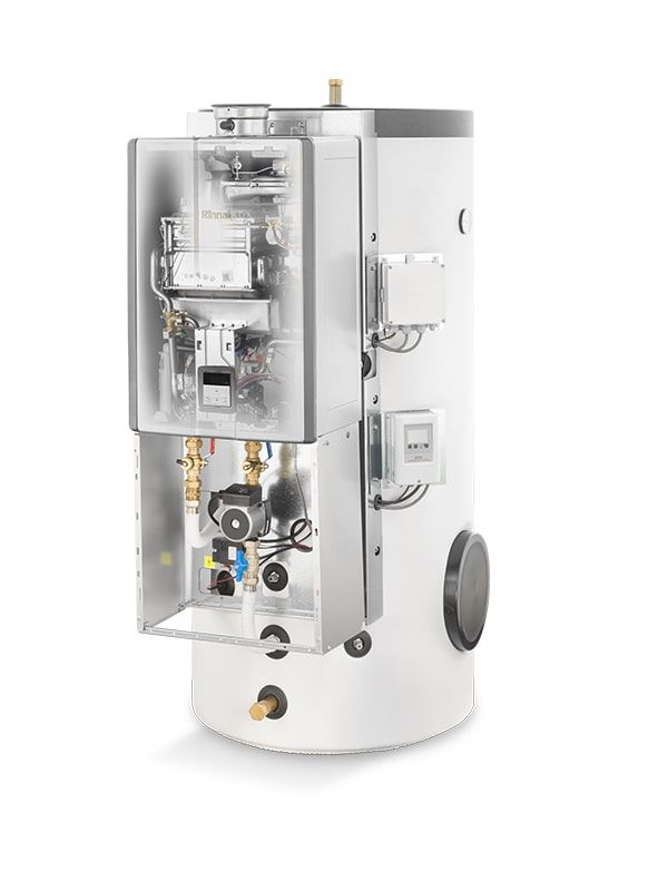 Ταχυθερμοσίφωνας αποθήκευσης! Συνδυάζει ταχυθερμοσίφωνα συμπύκνωσης SENSEI 26 l/min με δοχείο αποθήκευσης 300 λίτρων.